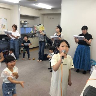 7/20 親子ゴスペル土曜日西宮校のレッスン マザーグースでウォーミングアップ 今月は7/...